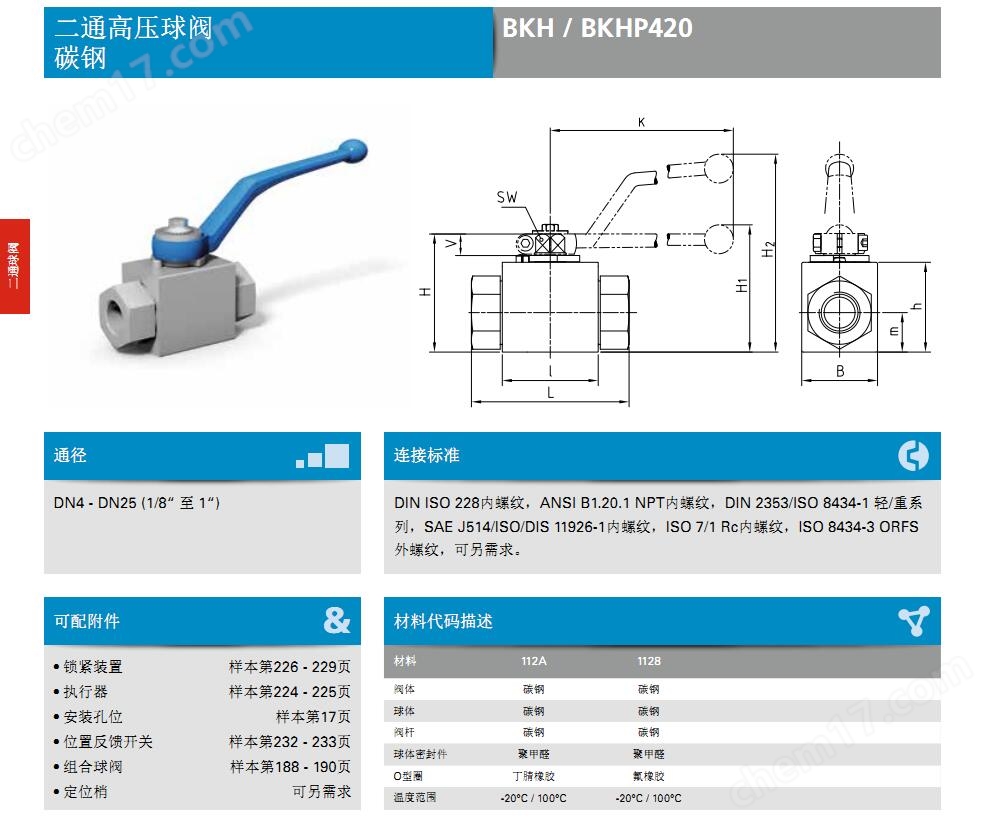 德国高压球阀已有超过六十年的历史。产品主要包括高压球阀和针形调节阀两个系列。目前能提供压力最高达150MPa,温度从-196℃到500℃的高压球阀。美尔基安球阀以其独到的密封技术,产品可用于甚至是苛刻和剧毒的介质。 美尔基安的高压球阀的客户目前遍布世二通高压球阀:KH-CETOP,BKH-SAEFS,KHZ-SAE公制螺纹BKH-AS,BKH-F,BKH-AS,MKH-
